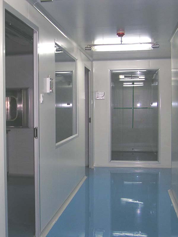 1. 凈化車間墻、頂板材料一般采用50mm厚的夾芯彩鋼板、化妝品車間專用的氧化鋁型材制造。門采用凈化密閉門,窗采用鋁合金玻璃固定窗。